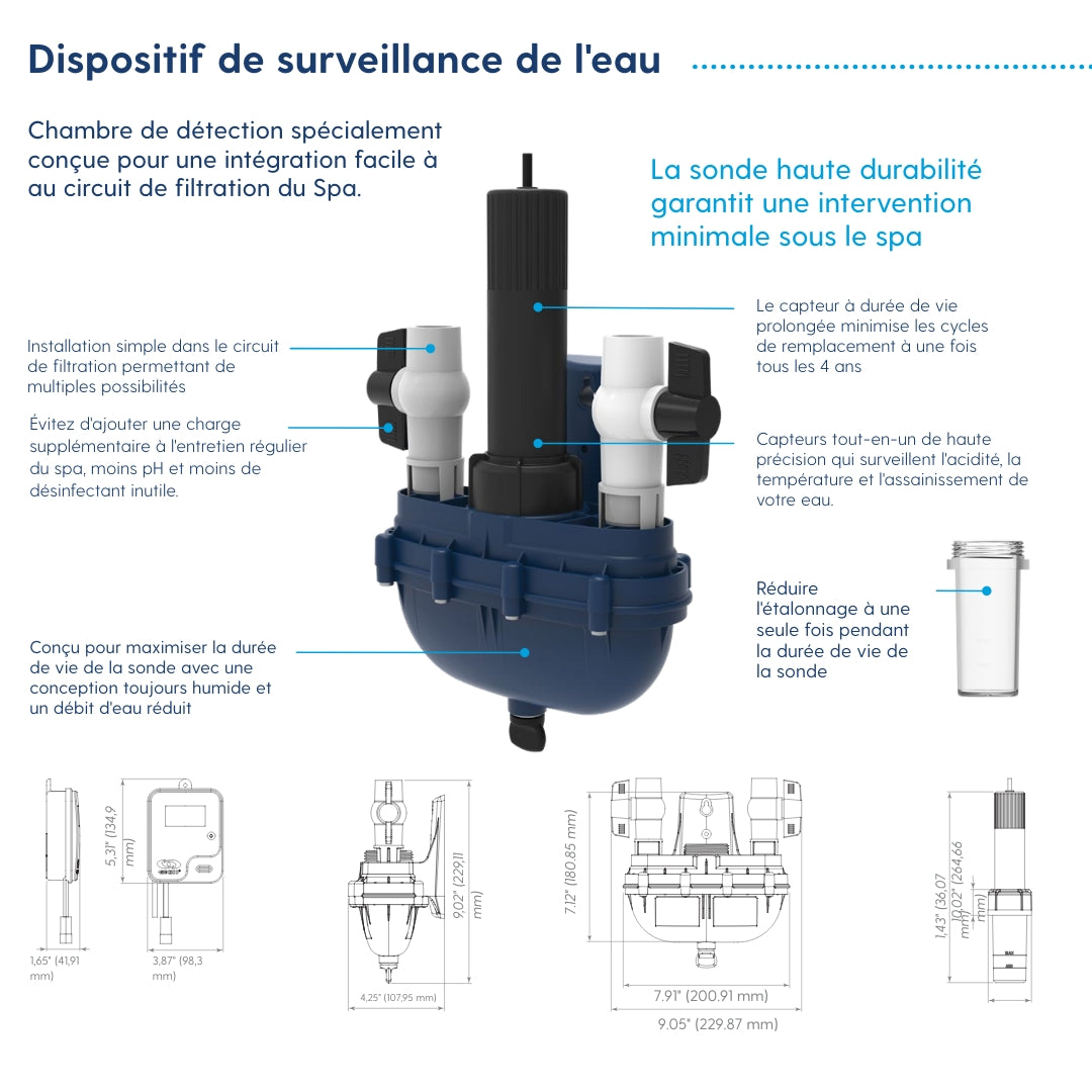 Le Waterlab mesure en continu les paramètres clés de l’eau de votre spa et transmet les données à l’application mobile. Vous recevez des recommandations claires pour ajuster le pH ou le niveau de désinfectant si nécessaire.