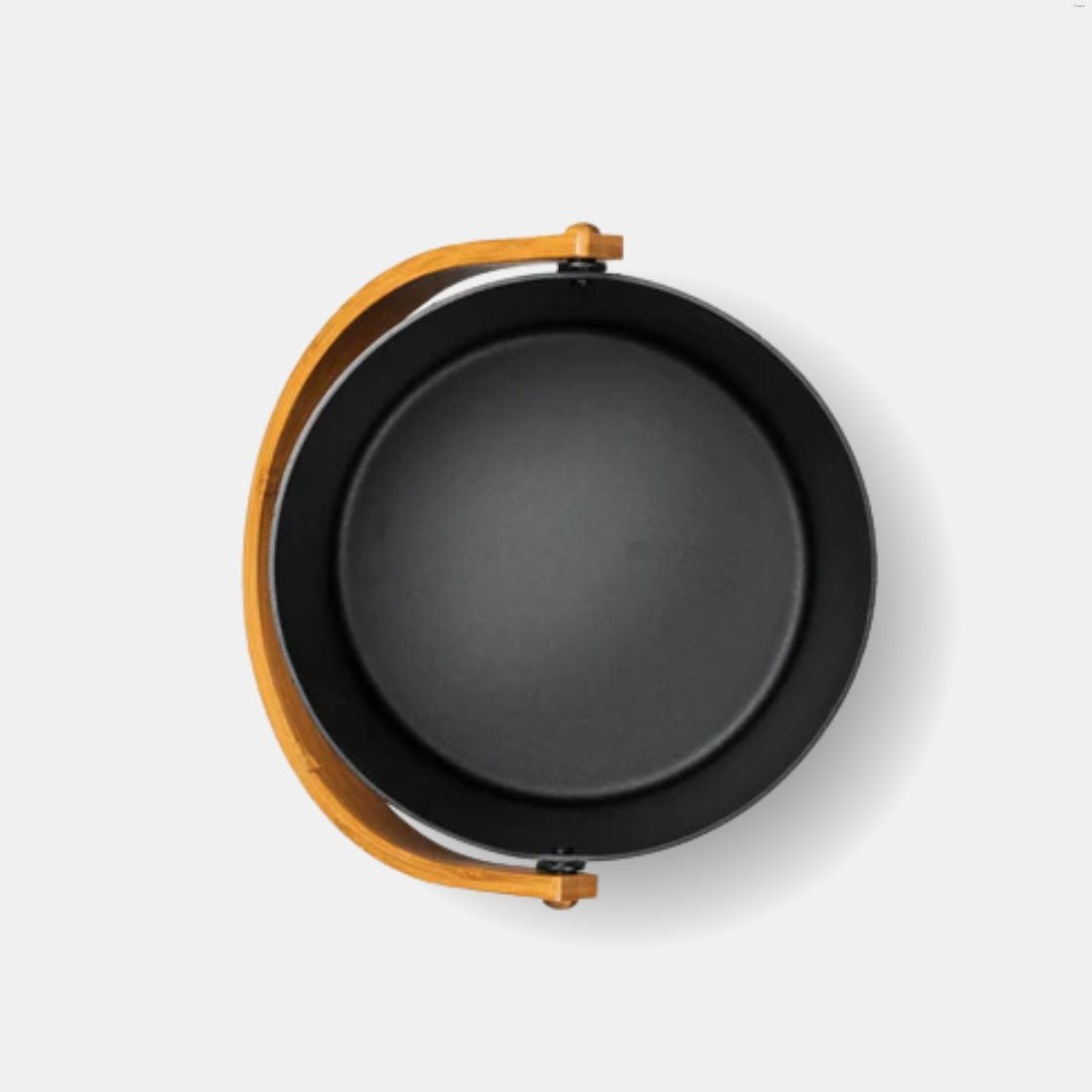 Seau pour Sauna Narvi Black, en aluminium noir mat avec anse en bambou thermo-traité. Contenance de 6,5 litres pour une humidification parfaite des pierres chaudes. Idéal pour un rituel de sauna authentique et intense