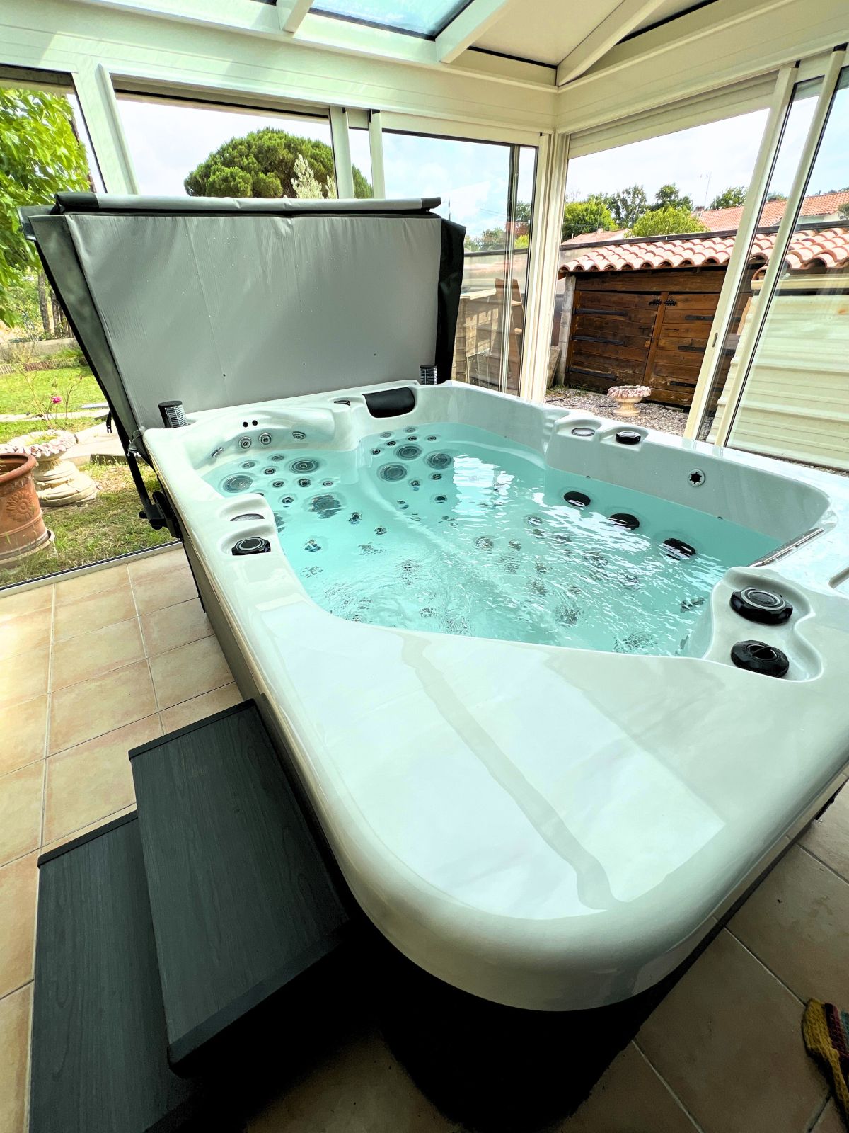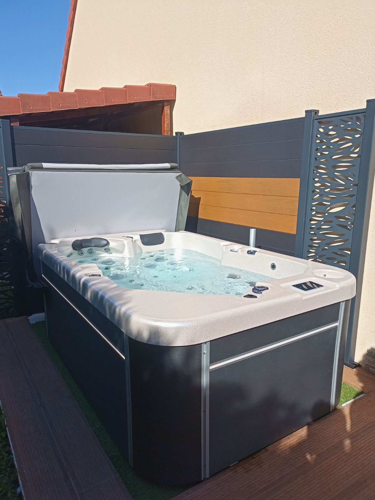 Optimisez votre espace en installant le Spa Tahiti Série Intense sur votre terrasse. Cette configuration est idéale pour ceux qui souhaitent profiter des plaisirs d'un spa sans sacrifier de place dans leur jardin. Facile à installer, le spa sur la terrasse offre un accès pratique à vos moments de relaxation, que ce soit pour commencer la journée en douceur ou pour vous détendre en soirée. En ajoutant une touche d'élégance à votre espace extérieur, vous créez une véritable oasis de bien-être chez vous.