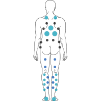 Les trapèzes, les cervicales et les épaules, ainsi que les deltoïdes et les hanches bénéficieront d'un massage dynamique, que vous pourrez augmenter ou diminuer en intensité.