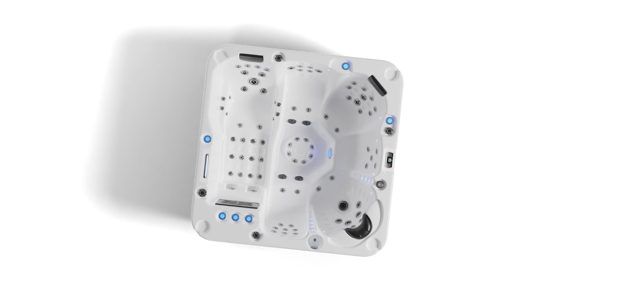 Ses dimensions généreuses (210 x 210 x 95 cm) et sa cuve de 1 250 L en Acrylique Aristech’® offrent un espace confortable et durable. Le panneau de contrôle Gecko, simple et fiable, permet une prise en main intuitive, tandis que les finitions soignées, comme les buses en acier inoxydable, ajoutent une touche d’élégance.